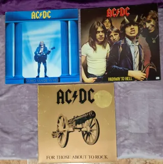 For those about to rock 1981 UK 60€ Highway To Hell 1979 (Strawberry Cut. Alsdorf Pressing) 75€ Who Made Who 1986 40€ Powerade 1978 (1ª Edición. Strawberry Cut) 70€ If You Want Blood 1978 (Strawberry Cut. Alsdorf Pressing) 75€ High Voltage 1976 50€ '74 Jailbreak 1984 50€ Dirty Deeds Don't Dirt Cheap (Strawberry Cut. Alsdorf Pressing) 40€ Blow up your video 1988 30€ Let There be rock 1977 (Strawberry Cut. Alsdorf Pressing) 80€ Flick of the Switch 1983 30€ Para más artículos visitar mi perfil. Vinilos CDs Rock Punk Heavy Musica Reproductor Tocadiscos Discman Cassette Antigüedades Coleccionismo Vintage Retro Indie Alternativo Insert