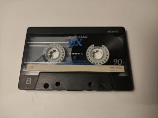 Cinta de cassette Sony UX con etiqueta escrita. Sesión grabada en cabina por Ricardo F de sábado noche en discoteca Chasis de Mataró - Cinta de posición cromo. - Grabación de música nacional. - Fecha de grabación: 16-8-97.