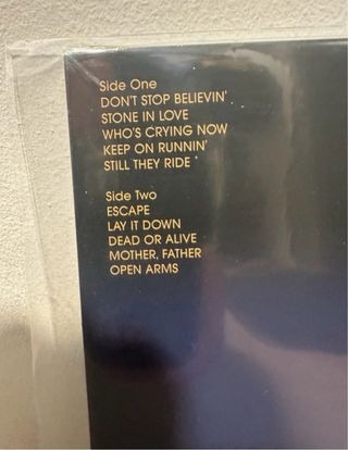 Disco de vinilo del álbum Escape de Journey. Vinilo nuevo sin usar precintado. - Género: Pop Rock Internacional.