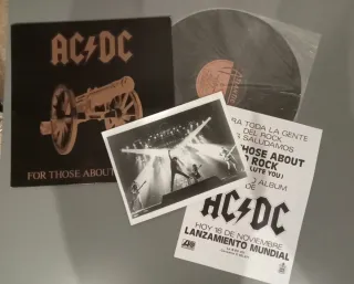 Vinilo de AC/DC, For Those About to Rock, primera edición. - Incluye funda original. - Disco de vinilo. - Fotografía de la banda en directo. - Folleto promocional. ACEPTO CAMBIOS POR VINILOS DE HEAVY QUE ME PUEDAN INTERESAR.