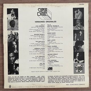 Vinilo con versiones originales de Aretha Franklin, San & Dave, Eddie Floyd, Roberta Flack y muchos más. Sello: Atlantic Año: 1978