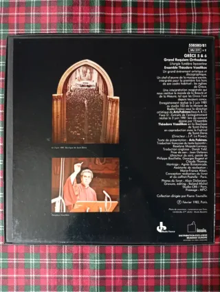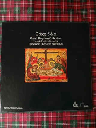 Grabación de música litúrgica bizantina. - Título: Grèce 5 & 6 - Obra: Grand Requiem Orthodoxe - Liturgia: Funèbre Byzantine - Intérprete: Ensemble Théodore Vassilikos - Colección: Musiques traditionnelles vivantes, Musiques rituelles et religieuses Sello Cora 558580/81 Album en caja con 2 discos Los Febrero 1982