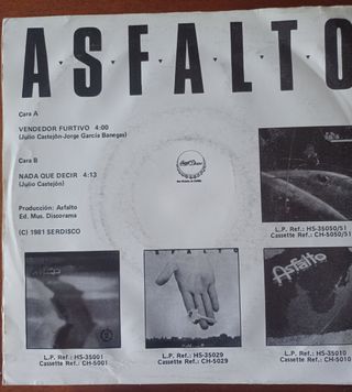 Vinilo sigle de Asfalto, álbum Vendedor . En buen estado. Disco promocional como se ve en la foto