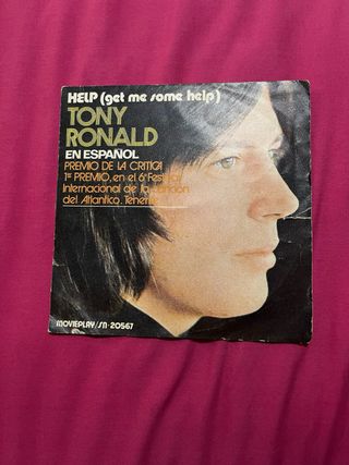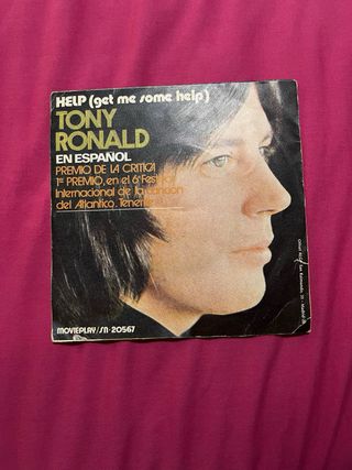 Disco de vinilo de Tony Ronald con la canción Help (Get Me Some Help). - Edición en español. - Premio de la Crítica 1º Premio en el 6º Festival Internacional de la Canción del Atlántico, Tenerife. - Referencia: MOVIEPLAY/SN-20567.