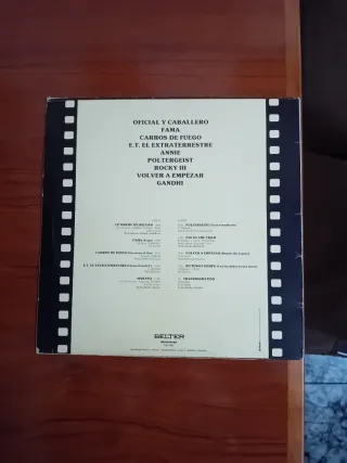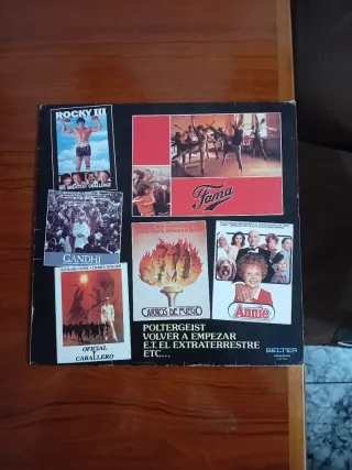 Vinilo con una selección de bandas sonoras de películas. - Rocky III - Gandhi - Carros de Fuego - Annie - Poltergeist - E.T. el Extraterrestre - Fama En buen estado Se entrega en mano en Cornellá
