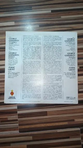 Este vinilo presenta dos obras maestras de la música clásica. - Ferde Grofé: Grand Canyon Suite (On The Trail) - George Gershwin: An American in Paris / Rhapsody in Blue - Orquesta de Filadelfia - Eugene Ormandy, Director - Michael Tilson Thomas, Director