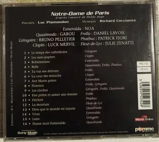 CD del musical Notre-Dame de Paris. - Textos de Luc Plamondon. - Música de Richard Cocciante. - Basado en la obra de Victor Hugo.