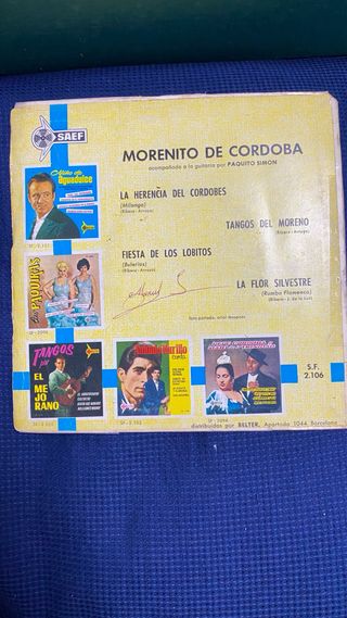 Single de vinilo de Morenito de Córdoba. - La Herencia del Cordobés - Tangos del Moreno - La Flor Silvestre - Fiesta de los Lobitos - Sello SAEF - Referencia 2106