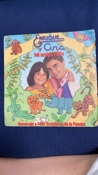 Vinilo single del dúo infantil Enrique y Ana. - Título: Mi amigo Félix - Homenaje a Félix Rodríguez de la Fuente - Incluye portada ilustrada con animales