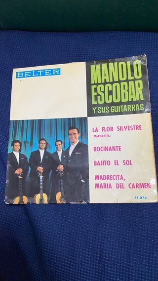 Single de vinilo de Manolo Escobar y sus guitarras. - La Flor Silvestre (Margarita) - Rocinante - Bajito el Sol - Madrecita, Maria del Carmen - Referencia: 51.074 - Sello: Belter