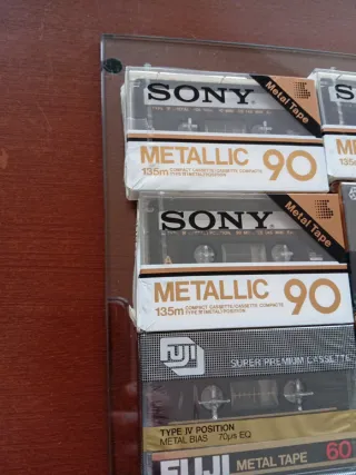 Cinta de cassette Sony Metal ES-60, fabricada en Japón. Es un modelo de alto rendimiento. - Tipo IV Metal. - Posición: Metal. - Sesgo de metal 70µs EQ. - Compact Cassette / Cassette La cinta más brutal de Sony insuperable. La misma monta en Metal máster y vale doble. Ultimas 5 unidades. Precio unidad 85€ muy por debajo del mercado.