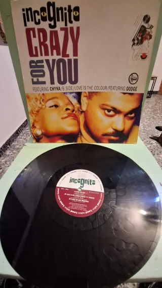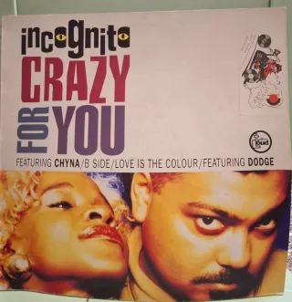 Vinilo del álbum Crazy For You de Incognito. KKO,SPACIO, KIUS, PONT AERI, METRO, COLISEUM, LOTE REMEMBER, CENTRAL ROCK, LIMITE, SKANDALO, ACTV, SPOOK, APTC, HOOK, NOD, FACTORY, KARAMELO, CHASIS, SCORPIA, ZENTRAL, ROCKOLA, FANTASY, VIRTUAL, MANSION - Incluye las canciones Crazy For You, Love Is The Colour. - Cuenta con las colaboraciones de CHYNA y DODGE.