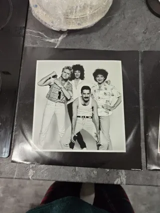 Disco de vinilo del grupo Queen. - Género: Pop Rock Internacional. - Imagen de la banda en blanco y negro.