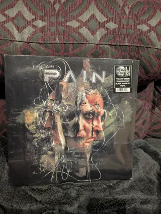 Vinilo del álbum I Am de Pain. Edición nueva. - Vinilo de color amarillo verde transparente y negro marmoleado.