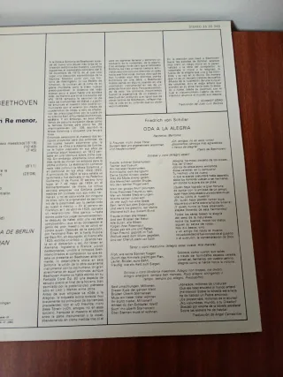 Disco de vinilo de la Sinfonía No. 9 de Beethoven, dirigida por Herbert von Karajan. - Orquesta Filarmónica de Berlín. - Cantantes: Janowitz, Rossel-Majdan, Kmentt, Berry. - Coro: Coro de Cantores de Viena. - Grabación realizada en estéreo en 1961/62.