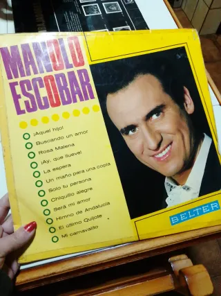 Disco de vinilo del aclamado artista Manolo Escobar. - ¡Aquel hijo! - Buscando un amor - Rosa Malena - ¡Ay, que llueve! - La espera - Un maño para una copla - Solo tu persona - Chiquillo alegre - Será mi amor - Himno de Andalucía - El último Quijote - Mi carnavalito