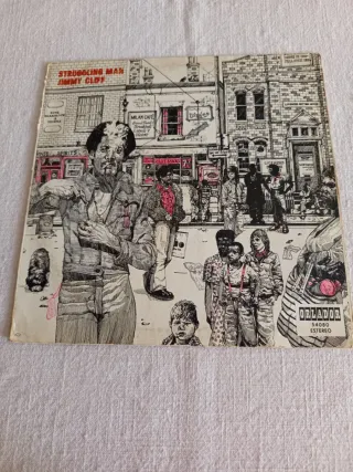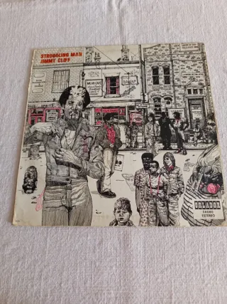 Disco de vinilo de Jimmy Cliff, Struggling Man, lanzado en 1974.Recor de Álbum. Nacido en Kingston_ Jamaica, músico y cantante. - Género: Reggae. - Portada con ilustración detallada de una escena urbana.