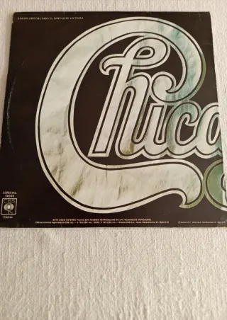 Vinilo del álbum Chicago VI, lanzado por Columbia en 1973, tiene dentro una funda interior estilo vintage, con un diseño de locomotora a vapor, imprescindible para coleccionistas y afisionados al Rock y el Jazz, fusión dlos años 70. Componentes: Peter Certera, Danny Seraphine, Roberto Lamm, Lee Loughnnane, Terry Kath, Walter Parazaider, James Pankon. Discos C B S. S.A_ Madrid. - Portada con diseño ornamental y foto de la banda. - Incluye el nombre del grupo Chicago en tipografía destacada.