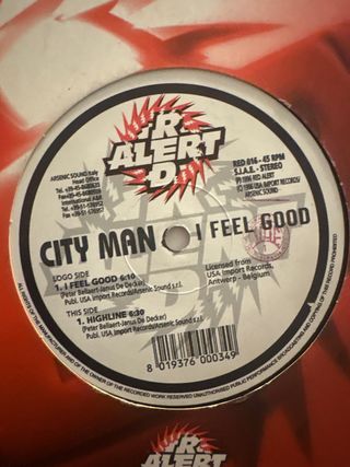 Vinilo de City Man con el tema I Feel Good. - Logo Side: I Feel Good (6:10) - This Side: Highline (6:30) - Publicado por USA Import Records/Arsenic Sound s.r.l. - Licenciado desde USA Import Records, Antwerp - Belgium - Año de publicación: 1996