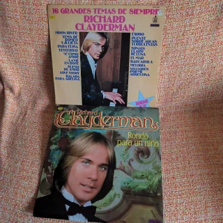 Dos vinilos del artista Richard Clayderman. - 16 Grandes Temas de Siempre - Rondó para un niño - Incluye canciones como Moon River, Tema de Romeo y Julieta, Yesterday, Exodus, Puente Sobre Aguas Turbulentas, entre otras.