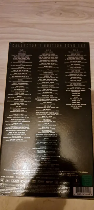 Edición coleccionista de AC/DC Plug Me In en formato 3 DVD. * cubre caratula y dvds 1 y 2 en muy buen estado ** caratula interior, dvd 3, libreto. Póster y réplicas de entradas como nuevos - Contiene material en vivo y documental. - Incluye actuaciones y entrevistas.