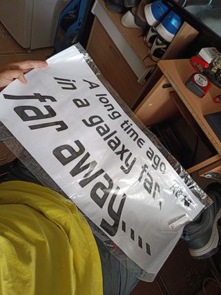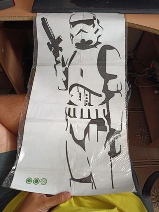 Pegatina decorativa de Star Wars. Ideal para cualquier fanático de la saga. - Diseño: "Hace mucho tiempo, en una galaxia muy, muy lejana..." y Stormtrooper - Material: Vinilo de alta calidad - Color: Negro sobre fondo blanco - Para colocar en superficies lisas - Tamaño: Vinilo Galaxy: 27x60 Vinilo Trooper: 60x30 - 40€ ambas, 30 unidad