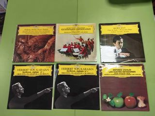 Conjunto de 6 vinilos de la prestigiosa discográfica Deutsche Grammophon. - Mozart: Requiem - J. Strauss & J. Strauss: Kaiserwalzer, Emperor Waltz - Debussy: Claro de Luna, Piezas para Piano - Beethoven: Sinfonías no 5 y no 6 (Herbert von Karajan) - Vivaldi: Las Cuatro Estaciones (Herbert von Karajan) Recogida en Pozuelo o envío por Wallapop. Juntos (18 euros) o separados (5 euros cada uno).