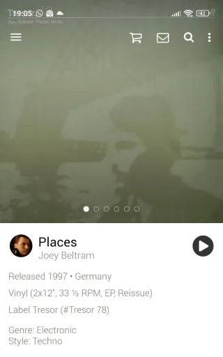 Vinilo del artista Joey Beltram, titulado Places. Formato: Vinilo (2x12, 33 1/3 RPM, EP, Reissue) Tresor (#Tresor 78). Tiene marcas de uso, y alguna pegatina en la galleta ( ver fotos). 15 euros. Para posibilidad de envíos preguntar. Techno, dj, música electrónica, ....etc.