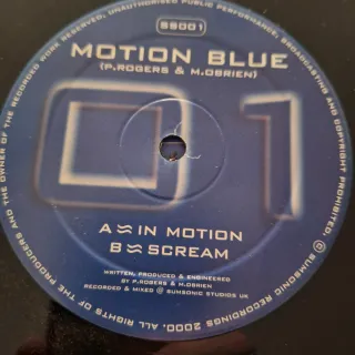Vinilo de Motion Blue. - Cara A: In Motion - Cara B: Scream - Escrito, producido e ingeniado por P. Rogers & M. Obrien. - Grabado y mezclado en Sumsonic Studios UK. - Año: 2000.