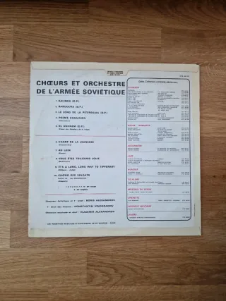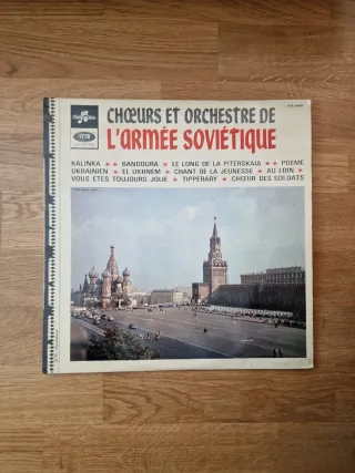 Disco de vinilo LP Coros y Orquesta del Ejército Soviético. - Título: Chœurs et Orchestre de l'Armée Soviétique - Referencia: CTX 40107 - Canciones incluidas: Kalinka, Bandoura, Le Long de la Piterskaia, Poème Ukrainien, El Ukhnem, Chant de la Jeunesse, Au Loin, Vous êtes Toujours Jolie, Tipperary, Chœur des Soldats.