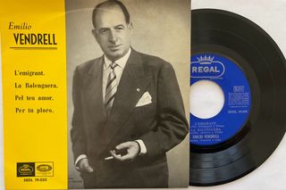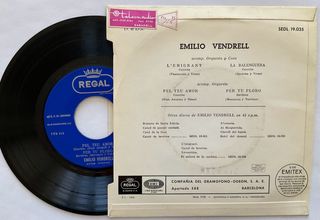Disco de vinilo EP de Emilio Vendrell. - Título: L'emigrant. - Canciones incluidas: L'emigrant, La Balenguera, Pel teu amor, Per tú ploro. - Sello discográfico: Regal. - Referencia: SEDL 19.035.