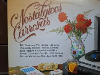 Este disco de vinilo recopilatorio Nostálgicos Carrozas de Belter trae grandes éxitos. - Incluye artistas como Dúo Dinámico, The Platters, Los Sirex, The Everly Brothers, Richard Anthony, Mina, Cliff Richard y Gino Paoli. - Portada con diseño retro y elementos decorativos como un jarrón con flores y un vaso de bebida. --Mejoro precio si comprais mas vinilos que tengo en mi perfil.