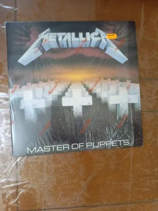 Vinilo del álbum Master of Puppets de Metallica. - Portada icónica con cementerio. - Incluye el título del álbum en la parte inferior.