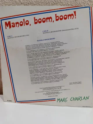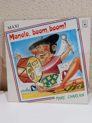 Disco de vinilo Maxi con la canción Manolo, boom, boom!. - Portada ilustrada por Marc Charlan. - Sello discográfico Horus.