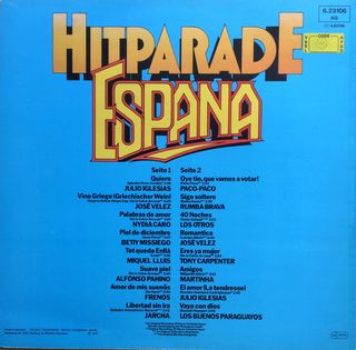 Recopilatorio de éxitos musicales de España. - Julio Iglesias - José Vélez - Los Buenos Paraguayos - Alfonso Pahino - Paco-Paco - Tony Carpenter - Martinha - Rumba Brava - Los Otros - Betty Missiego - Jarcha - Nydia Caro - Miguel Lluis.Sello: Formato: Vinilo, LP, Compilation País: Germany Publicado: 1977 Género: Latin, Pop Estilo: Ballad, Pop Rock