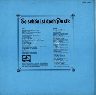 Disco de vinilo con el álbum So Schön Ist Doch Musik. Formato: Vinilo, LP, Compilation, Stereo País: Germany Género: Latin, Pop, Classical, Folk, World, & Country Estilo: Classical, Romantic, Easy Listening, Tango, Folk