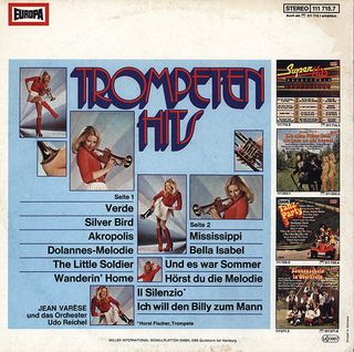 Vinilo de recopilatorio Trompeten Hits de la discográfica Europa. Sello: Europa Formato: Vinilo, LP, Stereo País: Germany Publicado: 1977 Género: Pop Estilo: Easy Listening, Instrumental