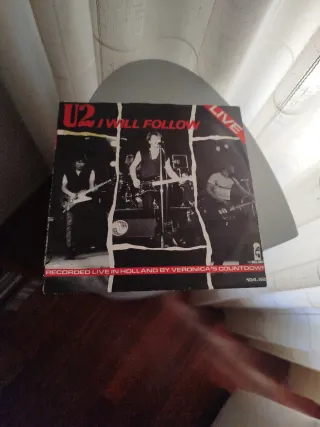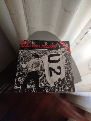 Vinilo de U2 I Will Follow en directo. Una pieza de coleccionista para los fans de la banda. - Portada con imagen de concierto. - Incluye la canción I Will Follow en directo.