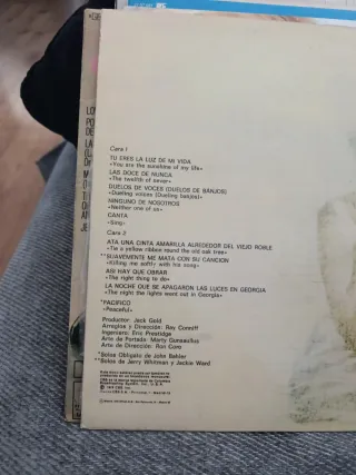 Disco de vinilo del grupo Mocedades. - Título del álbum: Amor de Hombre. - Portada con la formación del grupo.