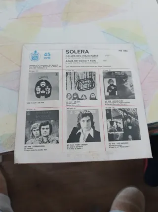 Disco de vinilo del grupo Solera. - Título: Calles del Viejo Paris - Cara B: Agua de Coco y Ron - Referencia: HS 964