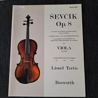 Sevcik for Viola - Opus 8: Changes of Position & Preparatory Scale Studies Otakar Sevcik, Lionel Tertis Editores BOSWORTH En inglés, francés y alemán 24 páginas Tiene el nombre en la primera página. El resto sin anotaciones