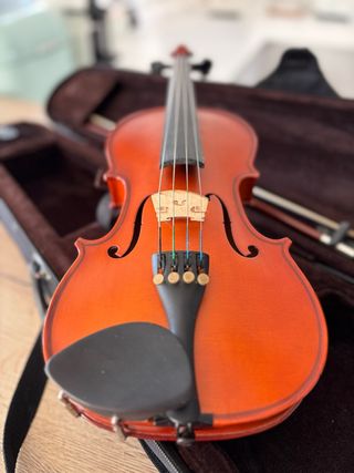Viola de 12 pulgadas, ideal para quienes se inician en el aprendizaje de este instrumento. - Tamaño adecuado para principiantes. - Acabado en madera de color marrón cálido. En perfecto estado