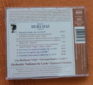 NAXOS BERLIOZ Harold en Italie Rêverie et Caprice Le carnaval romain Benvenuto Cellini Lise Berthaud, Viola Giovanni Radivo, Violin Orchestre National de Lyon Leonard Slatkin