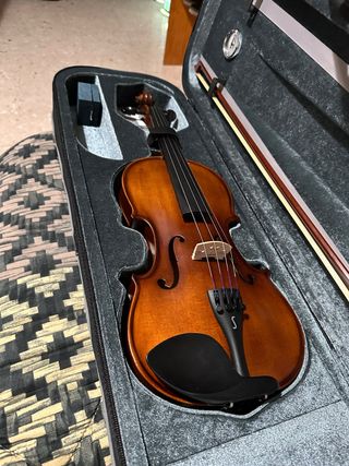 Violín en excelente estado, prácticamente nuevo, listo para ser tocado. Incluye su funda para protegerlo. - Acabado brillante. - Cuerdas de calidad. - Incluye arco.