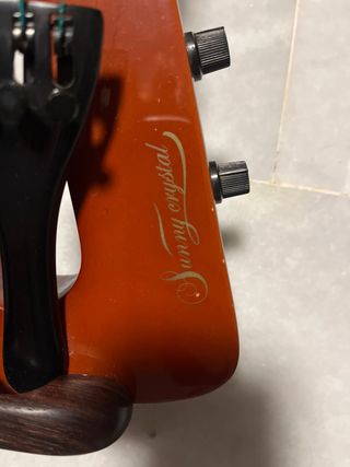 Violín eléctrico de color marrón brillante. Su diseño moderno y elegante lo hace destacar. - Cuerpo de madera. - Diapasón de madera oscura. - Clavijas negras. Marca Sunny cristal Se vende con la almohadilla y un arco
