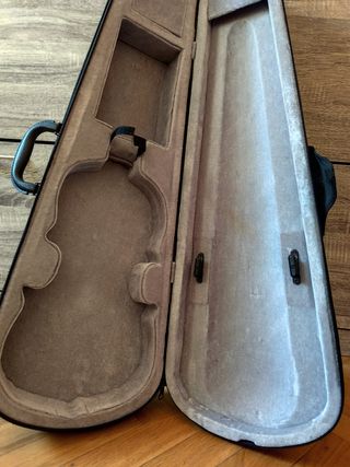 Estuche para violín tamaño 4/4. Diseñado para proteger tu instrumento con un interior acolchado. - Interior forrado en terciopelo gris. - Compartimento para accesorios. - Asa de transporte. - Cierres de seguridad. Violín transporte funda rígida interior estuche tamaño 4/4 música orquesta instrumento ocasión oportunidad protección