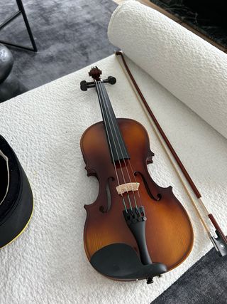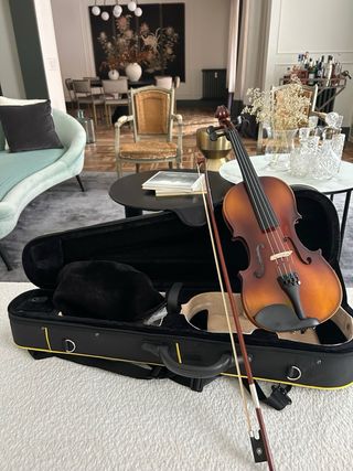 Violín 4/4 en excelente estado. Incluye todos los accesorios necesarios para empezar a practicar. - Funda protectora - Brea para el arco. - Almohadilla para mayor comodidad. - Arco un poco deteriorado
