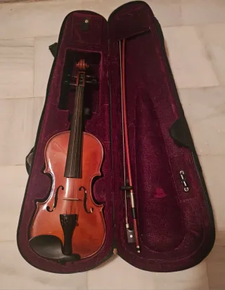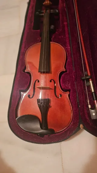 Se vende precioso violín 1/4 de la marca Höfner Schroetter, comprado en luthier Vidal hace dos años. Es un instrumento en estupendas condiciones, ideal para principiantes. - Incluye estuche y arco. - Acabado en madera de color marrón rojizo.