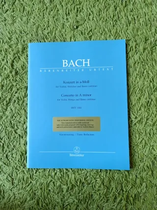 Partitura de Konzert in a-Moll de J.S. Bach,edición Bärenreiter Urtext.Concerto in A minor,BWV 1041.Para Violín, Cuerdas y Bajo continuo.Edición de interpretación autorizada.Incluye partes de violín solista con digitaciones y comentarios de Andrew Manze.Reducción para piano. ISBN:9790006466887.Tengo muchas más partituras de violín y violonchelo en mi perfil.Se puede ver sin compromiso.Consulta mis más de 1.200 valoraciones felices en Wallapop.Entrego en Prosperidad.También hago envíos. Partitura,violín,música,G.Henle Verlag,Urtext,Mozart,Paganini,Bach,Telemann,Vivaldi,Wagner,Fiorillo,Mazas,Küchler,Kreutzer,Gruetzmacher.