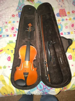Violín 4/4 en excelente estado, casi nuevo y listo para ser tocado. Ha sido utilizado durante un solo curso, es decir unos 9 meses. Comprado en Bejar directamente en el Luthier. El arco fue mejorado por el luthier. Las crines del arco son nuevas y muy buenas y las cuerdas de marca Dominant estan en excelente estado aún. El violín costo 350e sin el maletín. Yo se lo incluyo en el precio. - Acabado brillante y cálido. - Incluye estuche y arco.